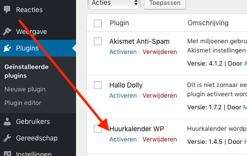 En voeg zo de Huurkalender plugin toe aan jouw website.