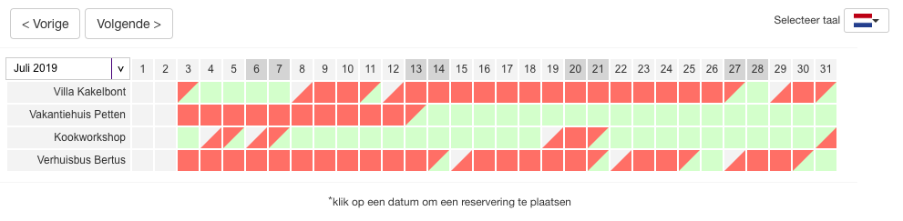 Maak het uzelf en uw klanten gemakkelijk en beheer uw beschikbaarheid eenvoudig online. Beheer uw online reserveringen, boekingen en beschikbaarheid van uw vakantiewoning, bed & breakfast, auto, camper of boot nu simpel online met het flexibele reserveringssysteem van Huurkalender.nl.